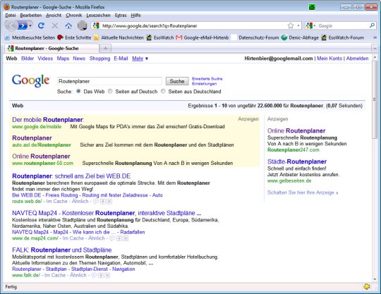 Da wird schon mal in Kauf genommen, daß da bei der Suche nach einem Routenplaner auch die eine oder andere Abzockerseite mit berücksichtigt wird.